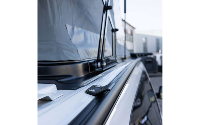 L’adattatore easygoinc. L’adattatore per tende da sole per furgoni Stellantis funziona solo in combinazione con il Multirail REIMO. La tenda da sole è rimovibile. Solo una piccola parte rimane sul veicolo quando la tenda viene smontata. La piastra di base è quasi invisibile dall’esterno perché il Multirail la nasconde. La funzione di grondaia del Multirail viene mantenuta ed è anche possibile montare una tenda da sole o un rubinetto attraverso il profilo della tubazione del Multirail. I tendalini possono essere rimossi quando non vengono utilizzati, facilitando la pulizia del veicolo. La guida all’autolavaggio è di nuovo possibile e il tendalino non deve essere portato in giro tutto l’anno. In inverno, ad esempio, il tendalino non è esposto agli influssi ambientali.