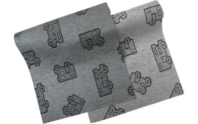 Moderna passatoia per uso interno in design da campeggio. Può essere tagliato a misura con le forbici. Il tappeto è lavabile a 30° C.