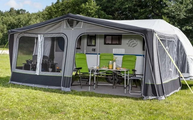 La Vicenza-L 4 Season è stata progettata come una tenda da viaggio comoda e leggera con dettagli curati per l’utilizzo in qualsiasi stagione! Grazie alla guida keder a scomparsa e alla tecnologia ad aria compressa a punto singolo, il montaggio è rapido e semplice, così potrete rilassarvi in un batter d’occhio nella vostra destinazione di vacanza! La ventilazione di alto livello richiudibile nella parete anteriore e le ampie finestre panoramiche, con zanzariera e pellicola, garantiscono un clima interno piacevole e una ventilazione ottimale. Tutti gli elementi della finestra possono essere arrotolati per facilitare l’accesso al centro e utilizzati come ingresso o chiusi completamente con una zip! Ciò significa che la tenda da sole può essere trasformata in un attimo in una tettoia quando le temperature sono elevate! Per una maggiore privacy, le finestre panoramiche possono essere chiuse in modo opaco dall’interno.