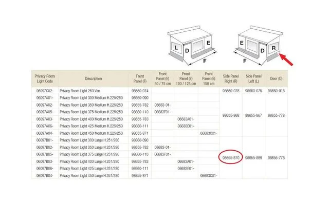 Parete laterale destra adatta alle tende da sole Fiamma Privacy Light Large