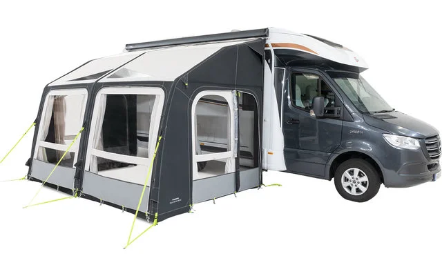 Con la sua versatilità rivoluzionaria, il Rally AIR Pro 390 si adatta a una varietà di veicoli da campeggio diversi. Grazie al sistema brevettato multi-altezza, la tenda statica gonfiabile può essere utilizzata sia con roulotte che con camper con attacchi keder che possono essere regolati a diverse altezze. Basta aprire le cerniere delle pareti laterali, fissare la tenda per mettere a punto la misura, poi chiudere le cerniere interne per riporre il materiale in eccesso. Realizzata con il tessuto Weathershield™ Pro, le finestre cristalline e la ventilazione extra creano uno spazio abitativo confortevole ovunque si monti la tenda.