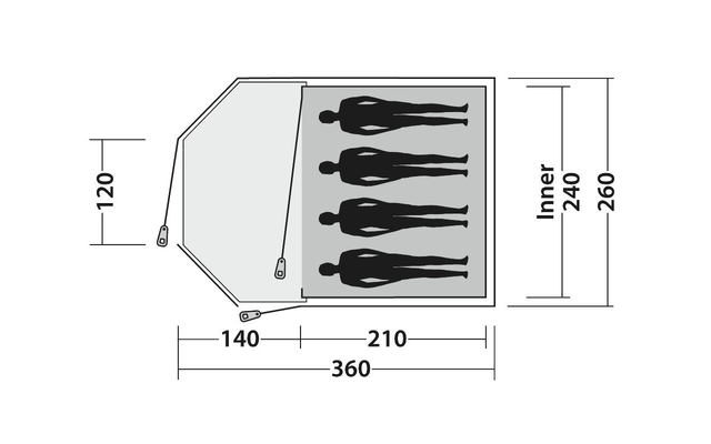 La versatile struttura a cupola della Blazar 400 è dotata di pali in fibra di vetro. Offre spazio per quattro persone – ideale per coppie, giovani famiglie e amici. L’anticamera con pavimento rimovibile della tenda è dotata di un’ampia entrata anteriore e di un’entrata laterale affiancata da finestre e bocchette di ventilazione a prova di pioggia. La tenda interna è dotata di un ingresso a D e di una pratica sospensione per la lampada.
