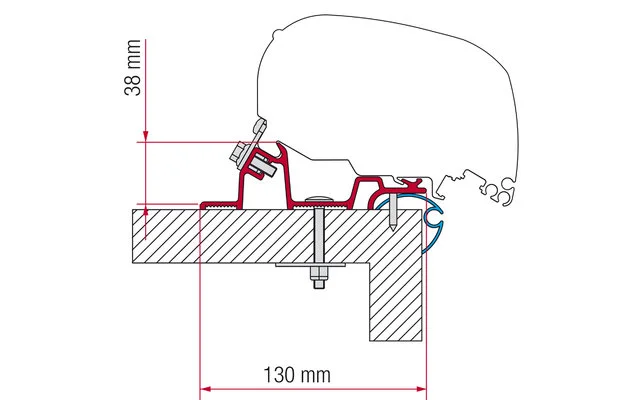 Adattatore adatto per il montaggio a tetto dei tendalini Fiamma (F65 / F80) su caravan standard. Composto da quattro staffe: 2x 50 cm, 2x 30 cm.