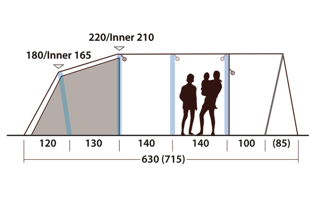 - il flysheet chiaro in un colore caldo crea un ambiente luminoso e confortevole nella tenda Il sistema HookTrack offre opzioni versatili per appendere lampade e altri oggetti che pesano fino a 1,5 kg
