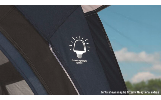 - Preparatevi per l’esclusivo sistema integrato Outwell Nightlight System con luce ambientale per facilitare l’accesso e l’orientamento. Il materiale traspirante del fly TC regola il clima all’interno della tenda indipendentemente dalle condizioni atmosferiche