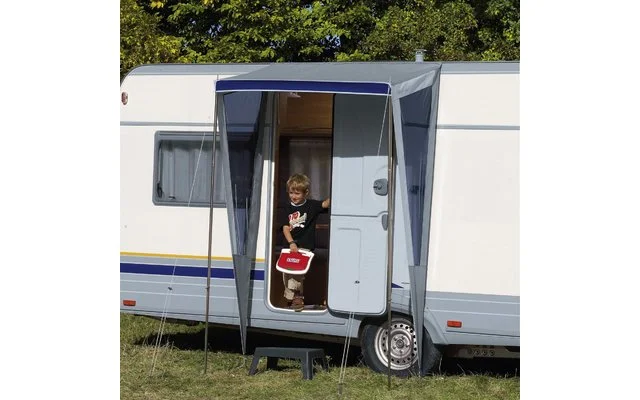 Protegge l’ingresso sotto la pioggia e il sole della loro roulotte, si costruisce rapidamente e si ripone di nuovo