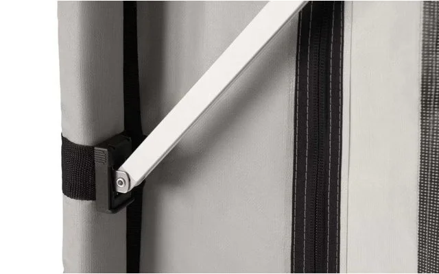 Perfetta tenuta del tetto grazie ai profili di serraggio per fissare le pareti laterali e collegarle al tessuto della tenda. Le pareti frontali e laterali sono dotate di doppi profili neri per una chiusura ottimale…. La parete anteriore ha un’apertura sulla destra che può essere comodamente arrotolata. Strisce di schiuma per un fissaggio antivento alla parete del veicolo. Le grandi finestre fanno entrare molta luce e danno una vera sensazione di esterno. Entrambi i lati e la parete anteriore sono fatti di materiale policloride di alta qualità. Ulteriori accessori possono essere fissati al binario keder sulla parete anteriore della tenda. Una gonna per sigillare il pavimento del veicolo è inclusa.