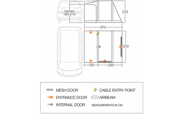 -Passaggio cavi con cerniera – per far passare il cavo di alimentazione nella tenda senza bloccare gli altri ingressi.