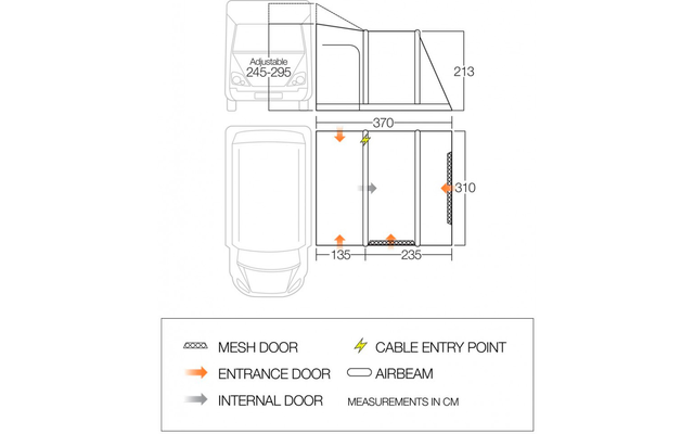 La Kela autoportante è dotata di un tessuto doppio ripstop Sentinel Pro 420D di alta qualità. Questo, unito ai sostegni trasversali e a una serie di cinghie antitempesta, fa sì che la Kela Pro Air sia una delle tende da sole migliori e più stabili in circolazione. Con un ingresso laterale su ciascun lato della camera di compensazione, questo spazio è ideale per riporre gli oggetti ed è più che adatto come ingresso per le intemperie, per mantenere asciutta la tenda e il camper/caravan. Il sistema brevettato Tension Band assicura che la tenda rimanga stabile anche in condizioni climatiche avverse, ma allo stesso tempo può essere facilmente riposta nelle borse in dotazione quando non viene utilizzata. La Kela è una tenda da sole dal design accattivante che offre spazio extra a pullman e camper.