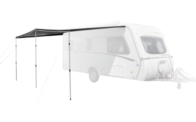 Il CANOPY SHADY PRO può essere utilizzato direttamente sulla roulotte. Come tettuccio parasole, può essere applicato ai modelli GALAXY, PLUTO, CERES e VEGA. Con una profondità di 225 cm, avrete una protezione extra dall’ombra e dalla pioggia. Grazie ai tre pali regolabili in altezza in modo continuo, il CANOPY SHADY PRO è molto facile e veloce da montare.
